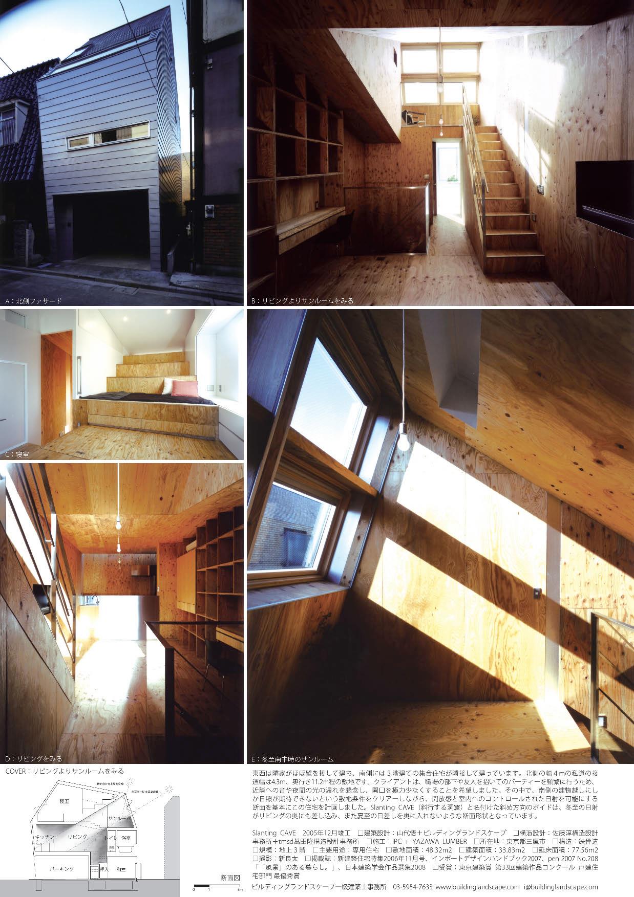 - Award:33th Tokyo Architecture Award_Architectural Works Concours_Private House Category_First prize (東京建築賞第33回建築作品コンクール戸建住宅部門 最優秀賞)(2007)、Architectural Institute Japan_Selected Architectural Designs 2008 Selected(2007)