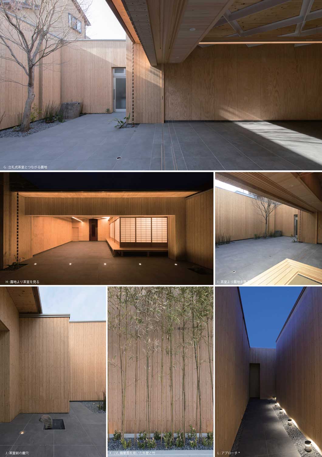 大野の茶室は、新しい木質建材として注目を集めるCLT及びLVLの厚板を用いた都市木造プロジェクトである。構造体の全てに木質の厚板を用いることで現場作業を省力化を図り、厚板木造プレファブ工法のプロトタイプとして計画された。